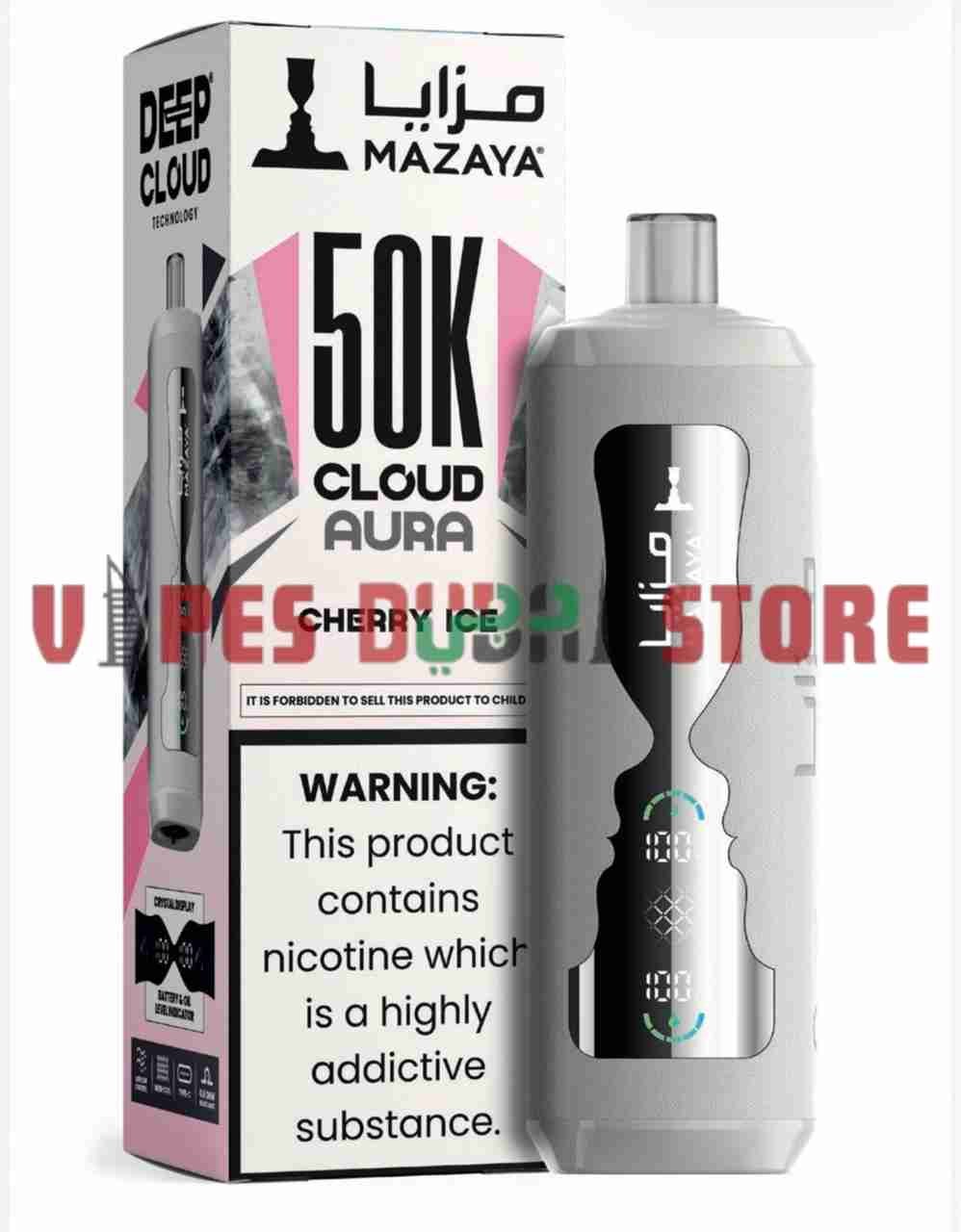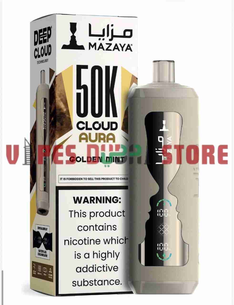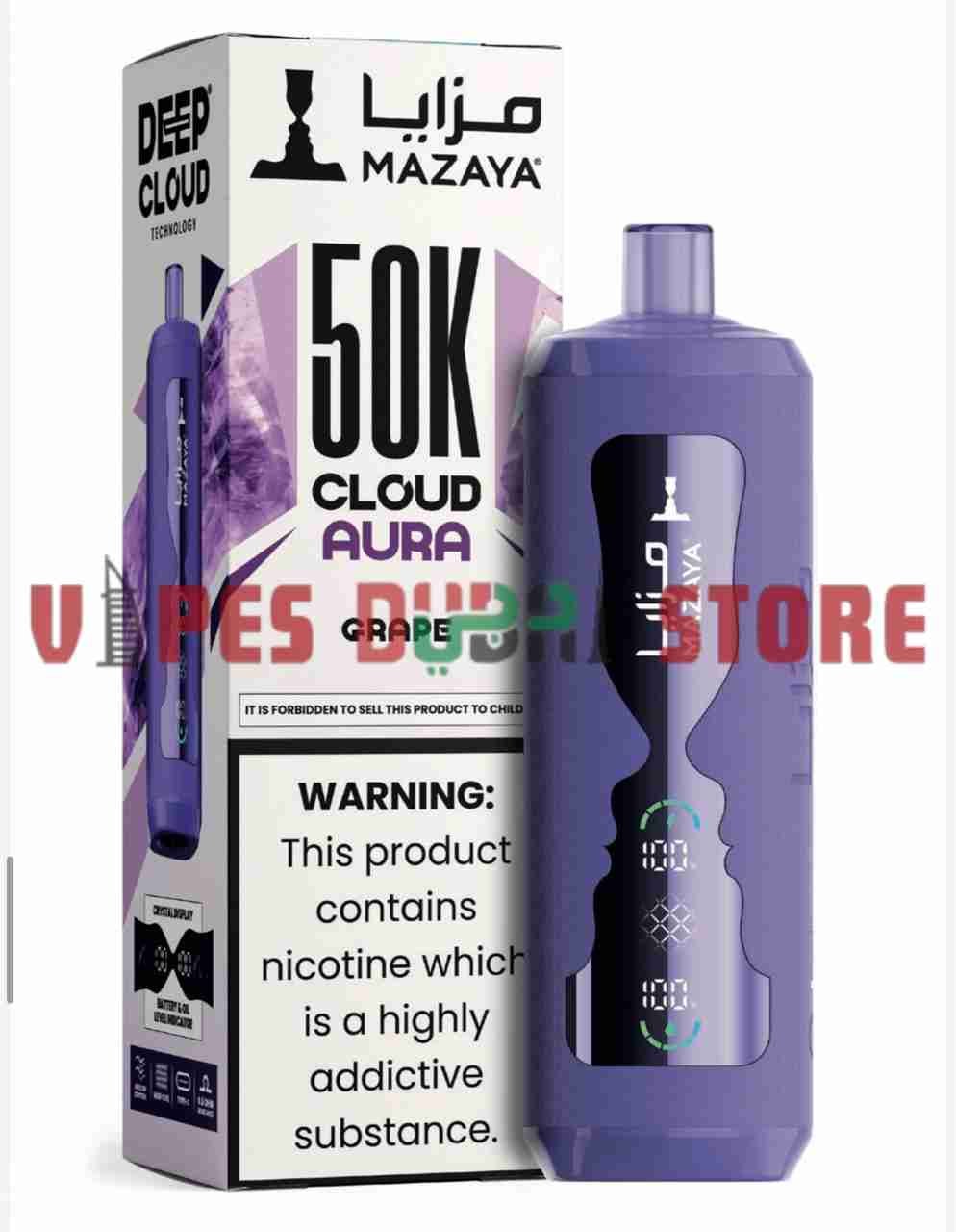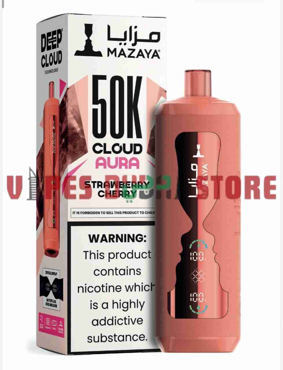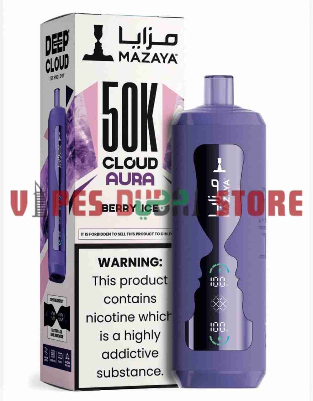With a nicotine strength of 6 mg/ml (0.6%), the device provides a balanced experience suitable for users who prefer moderate nicotine intensity. The Type-C charging port ensures faster and more efficient recharging, minimizing downtime. MAZAYA combines practical engineering with premium flavor development, delivering consistent vapor production and stable performance throughout its lifecycle. Designed for convenience and reliability, the CLOUD AURA 50K is positioned as a high-capacity disposable option for users seeking extended use in the UAE market.